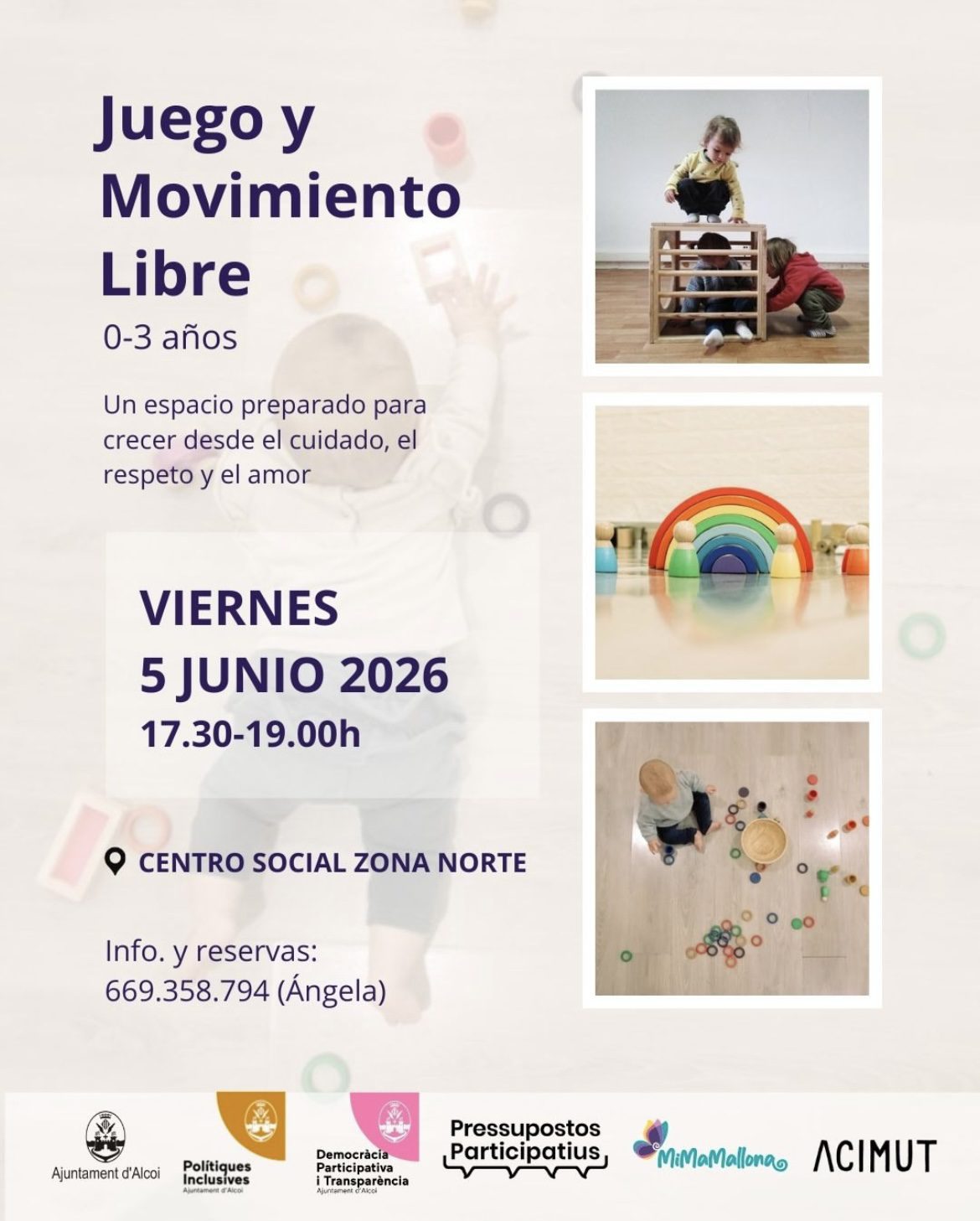 Un espai preparat per créixer des de la cura, el respecte i l’amor, dirigit a nens de 0 a 3 anys. És necessària inscripció prèvia i el nombre de places és limitat. Consulteu les dades de contacte en la imatge del cartell o a través dels canals oficials dels organitzadors.